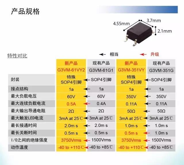 暢銷型號G3VM-61G1和G3VM-351G的升級版本。