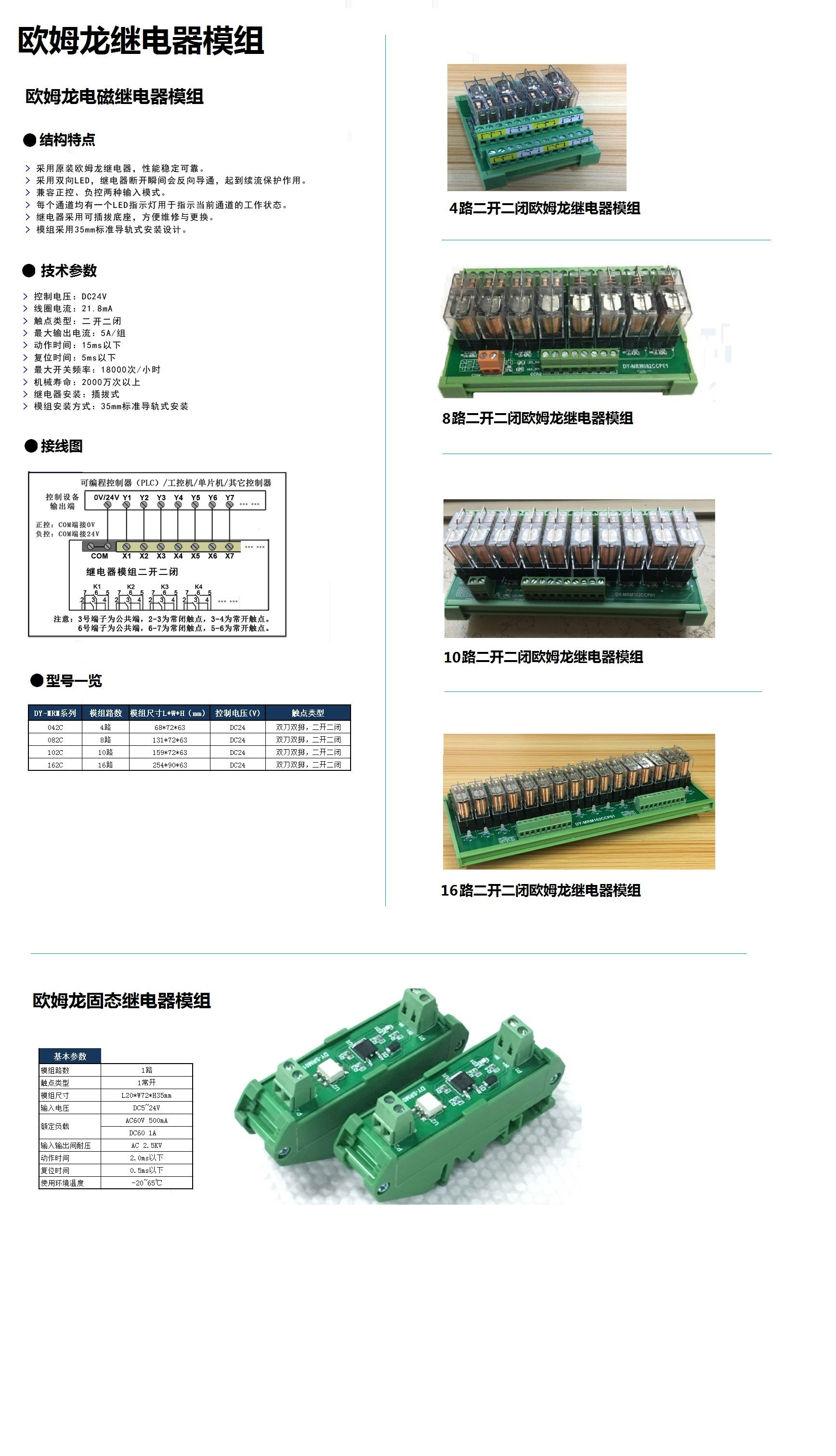 采用原裝歐姆龍繼電器,性能穩定可靠。 采用雙向LED,繼電器斷開瞬間會反向導通,起到續流保護作用。 兼容正控、負控兩種輸入模式。 每個通道均有一個LED指示燈用于指示當前通道的工作狀態。 繼電器采用可插拔底座,方便維修與更換。 模組采用35mm標準導軌式安裝設計。