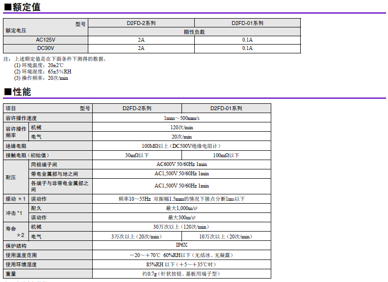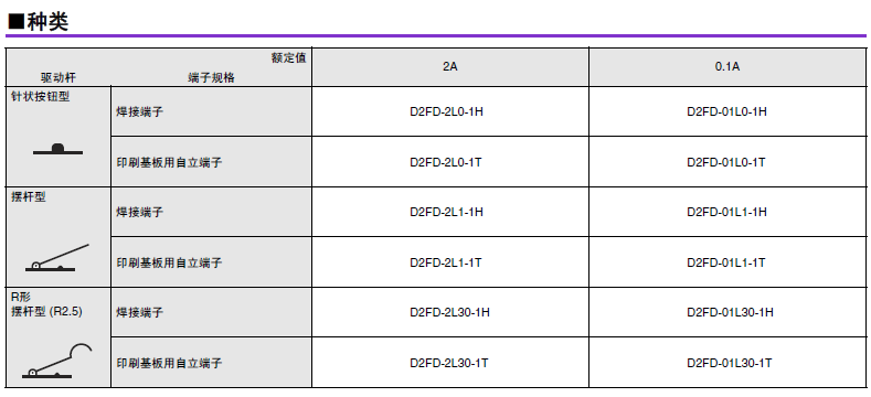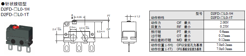 D2FD-2 超級小型基本開關 兼具防塵功能的極超小型基本開關 利用橡膠封裝的密封結構實現(xiàn)防塵 (IEC IP6X)。可在有灰塵、紙粉的環(huán)境下使用。 可動片為1片彈簧構造,支持AC125V 2A開關,更有微小負載型可供選擇。 還備有焊接、印刷基板用端子。