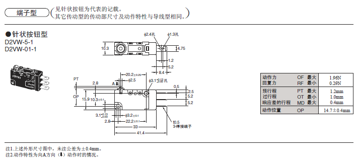 D2VW-5 密封型基本開關 密封型(符合IP67:除端子部 以外)的小型基本尺寸 采用環(huán)氧樹脂來確保穩(wěn)定的密封性。可以在會淋水或多塵埃的地方使用。 內(nèi)部結構采用廣受好評的V系列的結構,實現(xiàn)高精度和長壽命。安裝也和V系列相同。 可在汽車、農(nóng)業(yè)機械、大型家電、辦公設備等有耐環(huán)境性要求的場合使用。