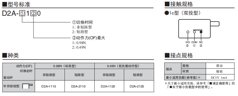 D3SH 系列歐姆龍檢測歐姆龍開關