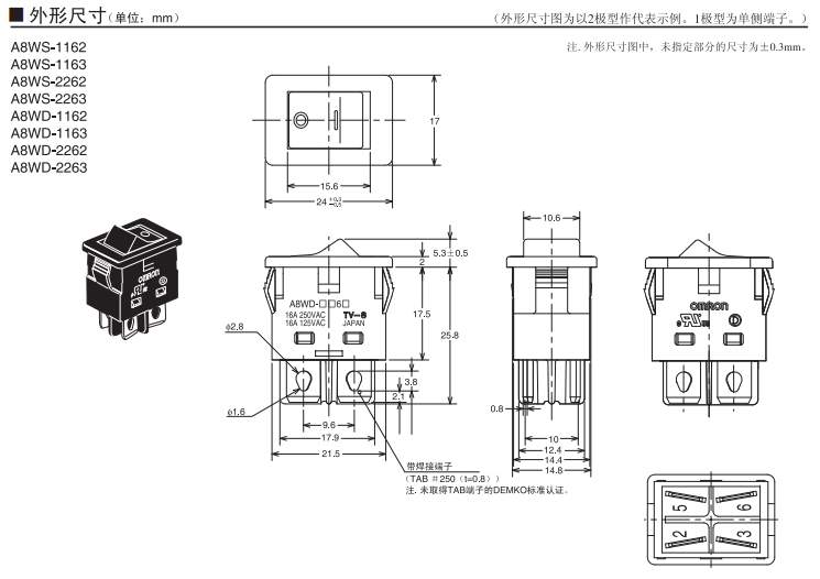 A8W 船型開關(guān) 高容量開關(guān)用的船形開關(guān)