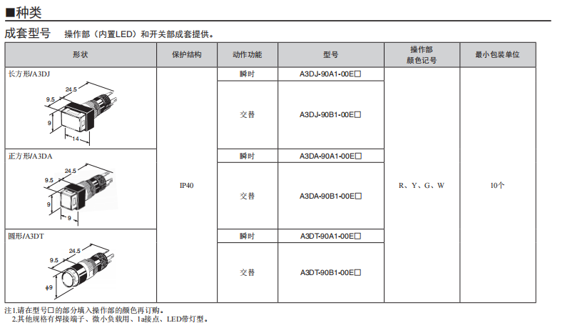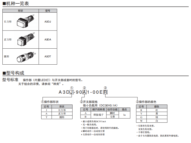 A3C系列按鈕歐姆龍開(kāi)關(guān)(帶燈、不帶燈)(圓型φ12)