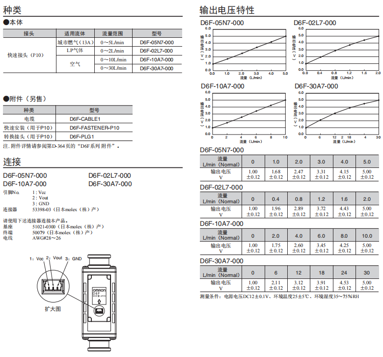 D6F-A7/-N7/-L7燃氣流量歐姆龍傳感器